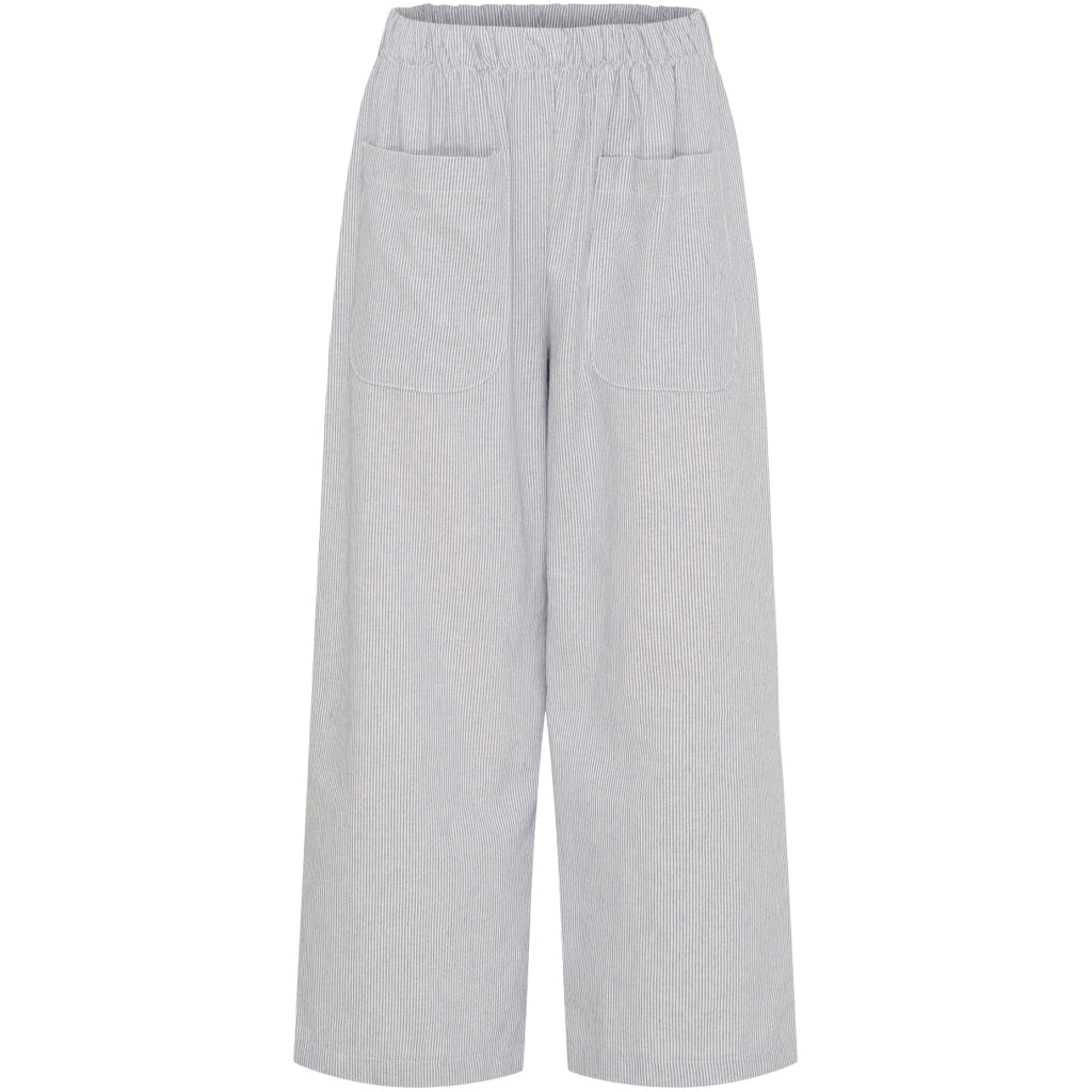 Cool bukser fra Marta du Château i en flot strib. Bukserne har en løs pasform og store, gode lommer front. De kan styles med den matchende jakke i samme strib.