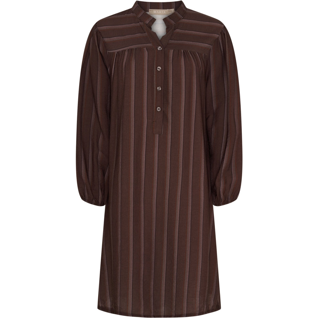 Fin og elegant kjole fra Marta du Château i stribet print. Kjolen har lange ærmer med elastik og knapdetaljer front. Style den med tights og sneakers for et fint hverdagslook, og med støvler og accessories til et festligere look.