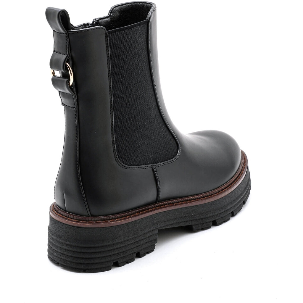 • Super smarte støvler i imiteret læder. Støvlen har en fin guld-detalje bagpå og lynlås på indersiden. Der er også et elastik panel på ydersiden. Den passer helt perfekt til efterårs- og vintergarderoben.