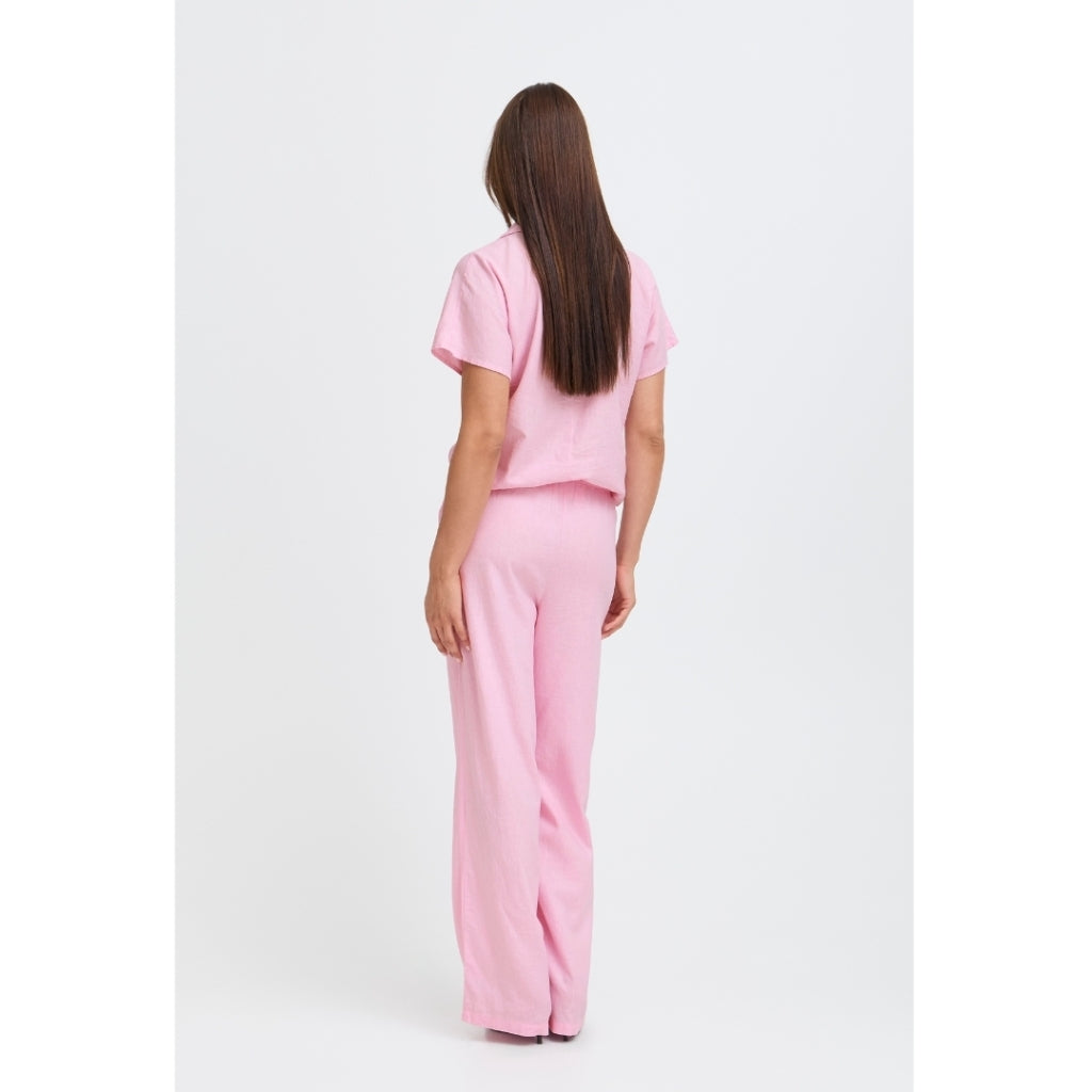 Smarte bukser fra B. Young i hørblanding. De har brede ben og elastik i taljen samt snøre. De er så behagelig at have på. De kan bruges enten til afslapning eller til et cafe besøg.