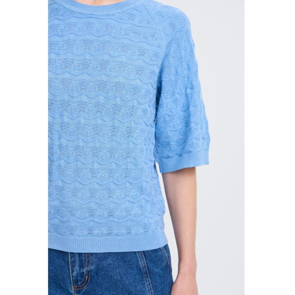 Smuk let strik med 3/4 ærmer og i det fineste mønster.