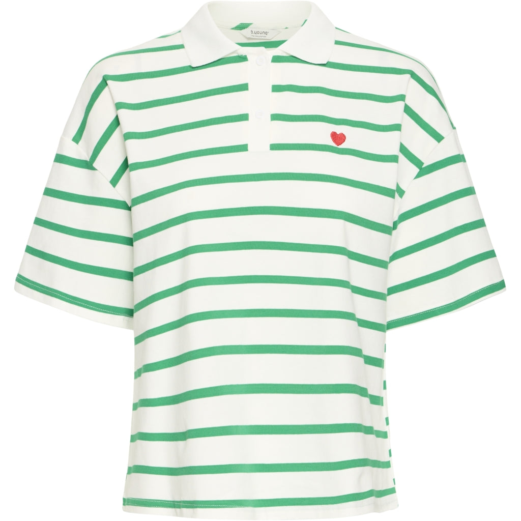 • Klassisk polo t-shirt fra B.young. Poloen har en klassisk krave, sofistikerede knapper og et enkelt hjertemotiv. Super cool til jeans og sneakers som et casual hverdagslook.