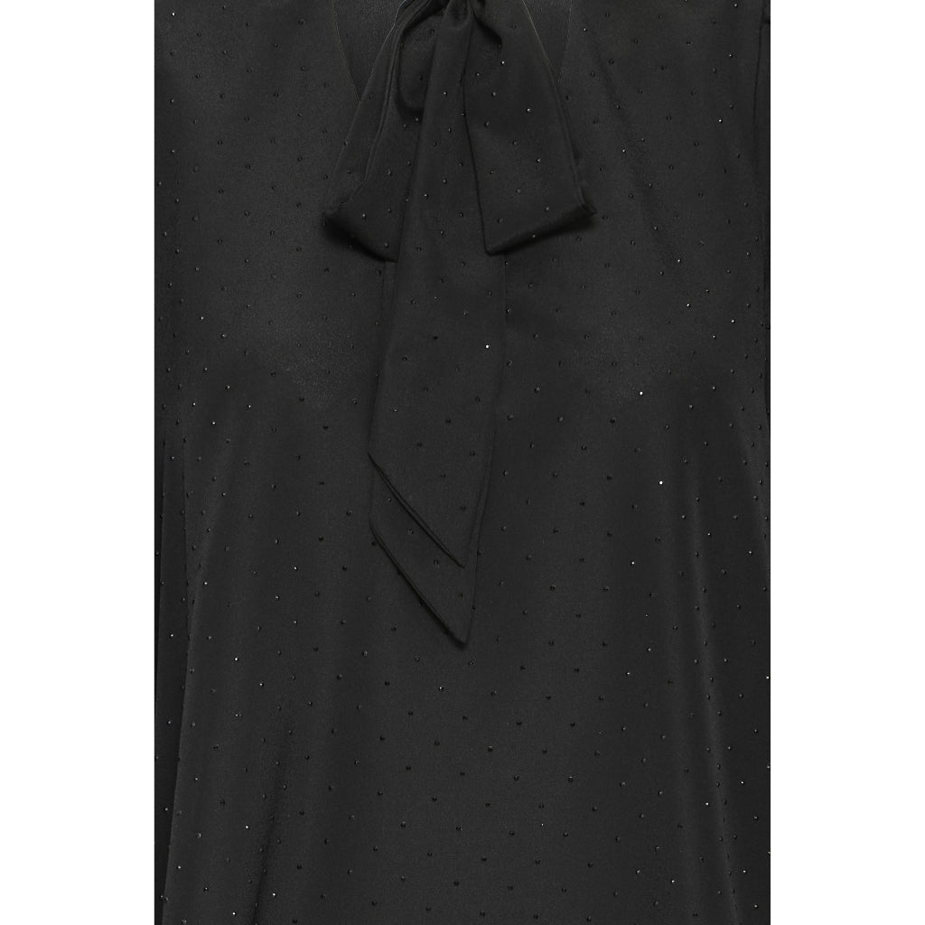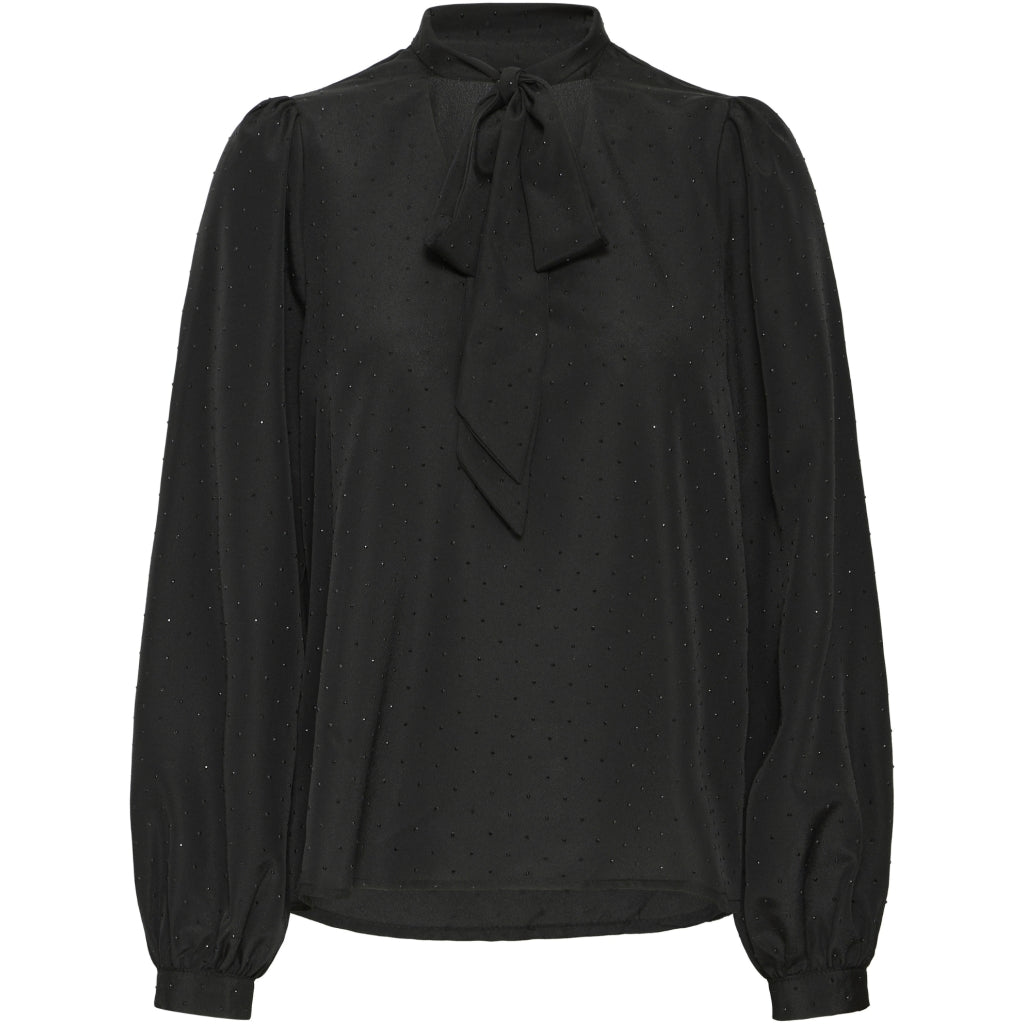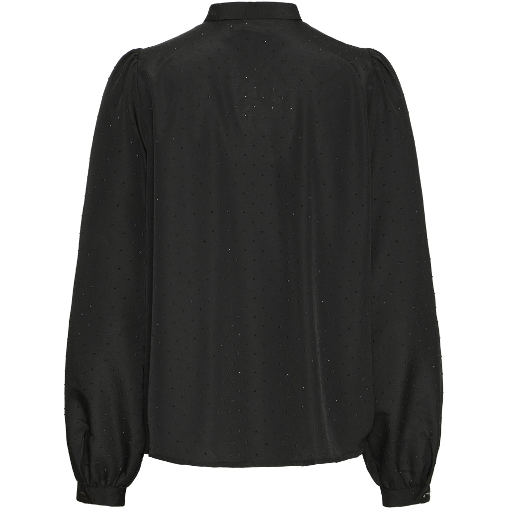 Smuk og feminin skjorte fra B.Young med prikker. Skjorten har en sløjfedetalje ved krave og let, puffede ærmer med knap-lukning ved ærmekanten. Den kan styles med et par klassiske habbit bukser og en lille hæl for et sofistikeret look.