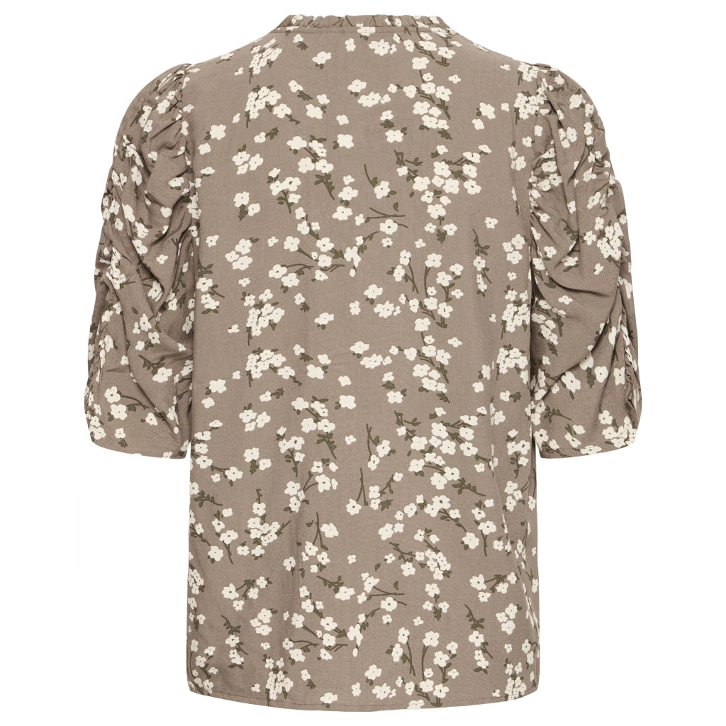 Smuk skjorte med trekvartærmer fra B.Young i flot blomsterprint. Den har flæse-detalje ved halsen, samt rynke-detalje på ærme og gennemgående knapper front. Blusen kan styles med et par strømpebukser og nederdel for et finere look eller et par jeans og sneakers for et mere afslappet look.