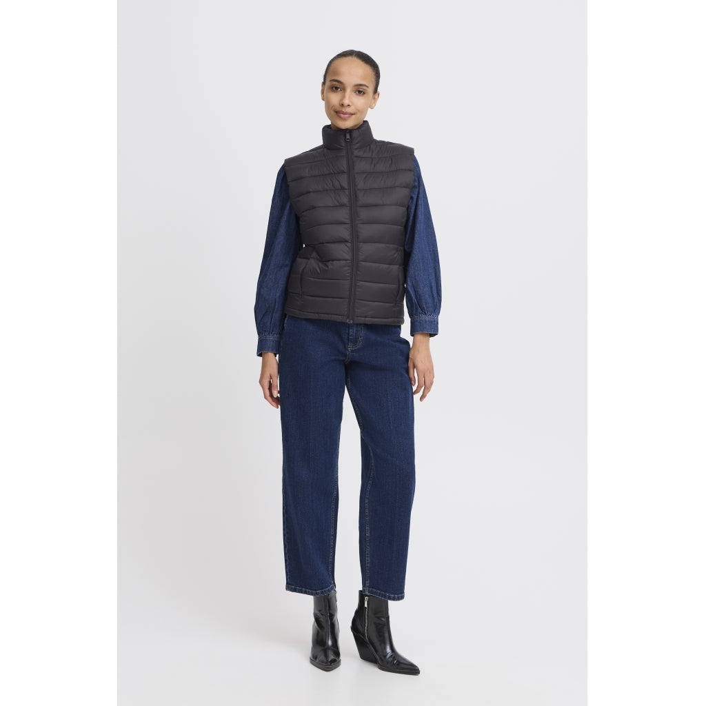 Super cool alsidig vest fra b.young. Kan styles med en strik eller skjorte under for et komplet lag-på-lag look. Vesten er gennemknappet og har praktiske sidelommer.