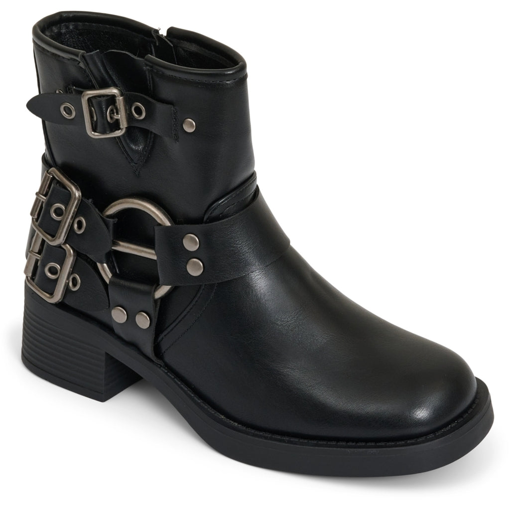 Cool og rå bikerboot. Støvlen har spænder på ydersiden og lynlåslukning på indersiden.