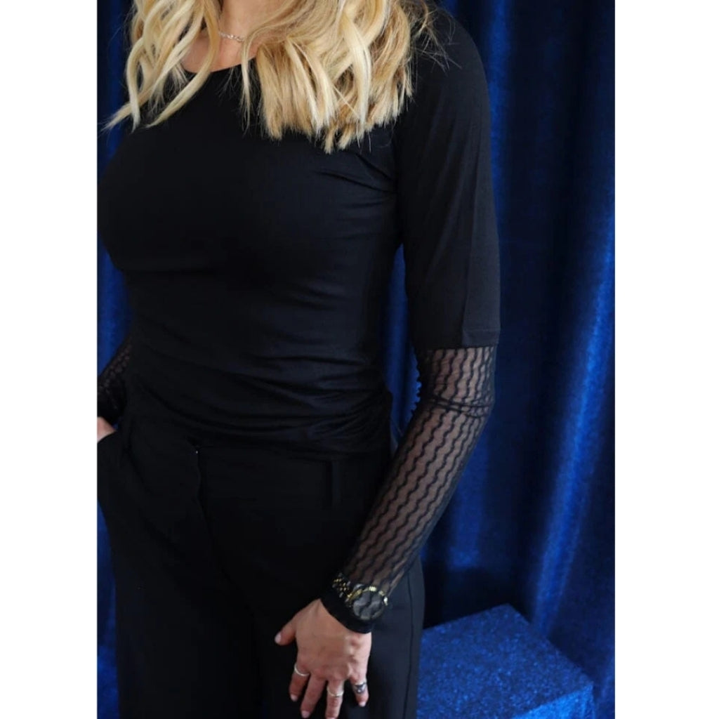 God basis bluse fra Liberté med en sød detalje med blonder ved ærmerne.