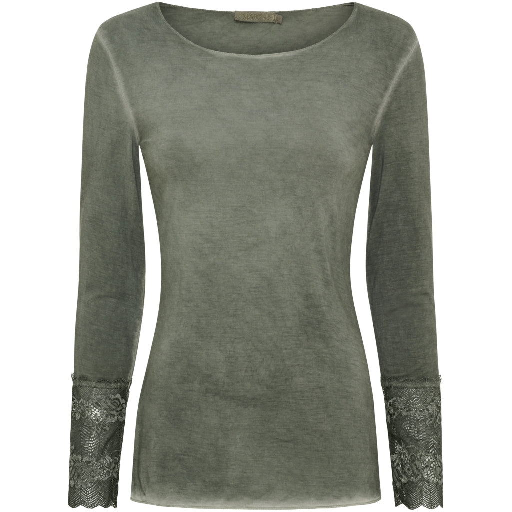 Smuk basis bluse med lange ærmer fra Marta Du Cháteau. Blusen har de fineste blondedetaljer ved ærmet (15 cm. blonde ved ærmet)