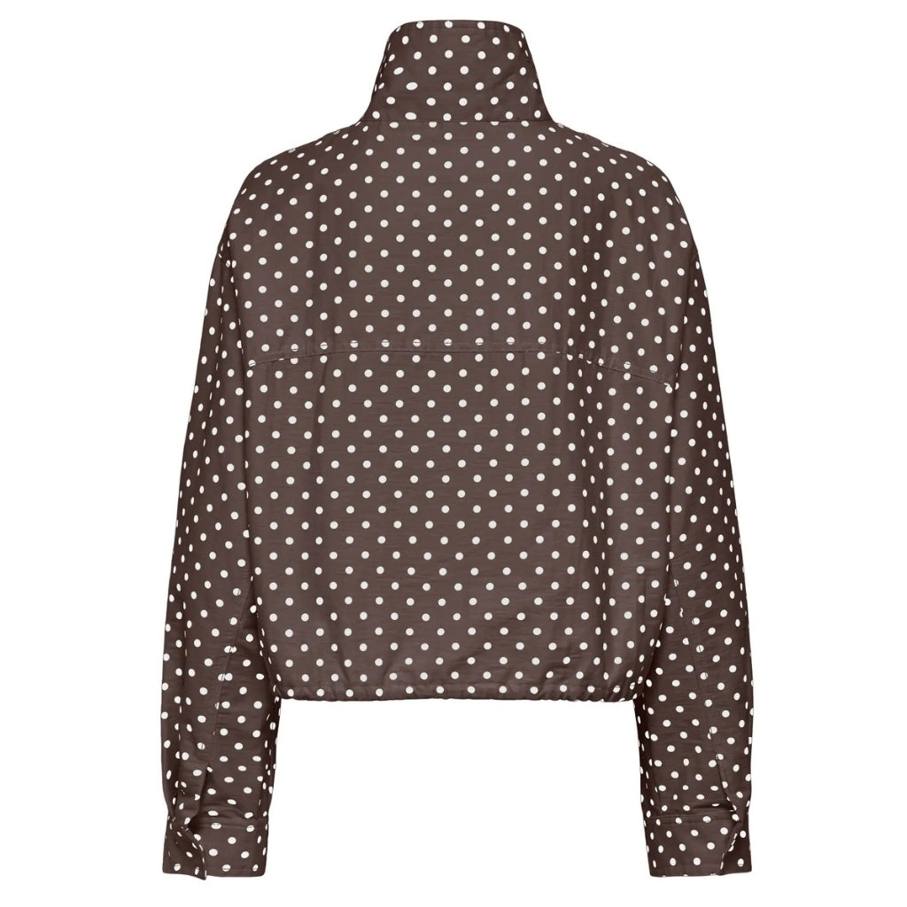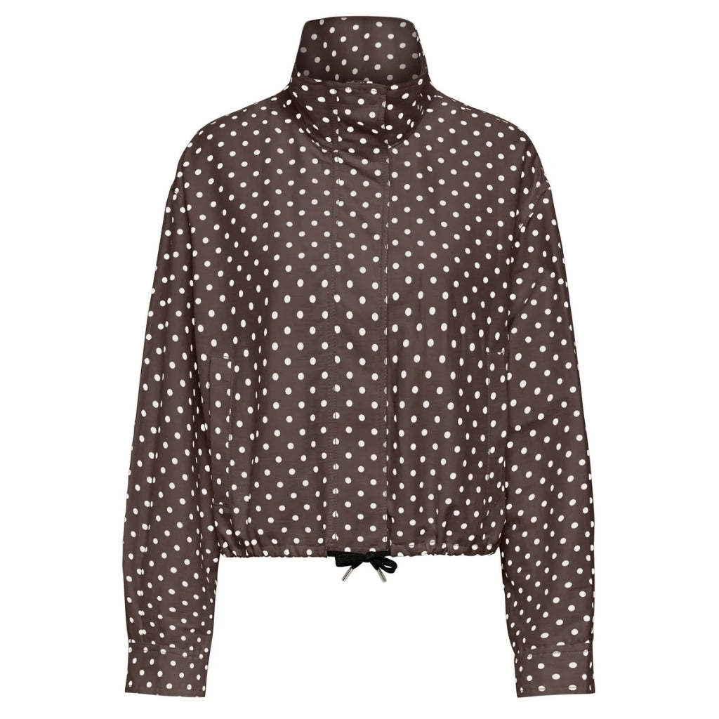 Sejeste jakke fra Only med de fineste dots. Perfekt til at give dit outfit et pift. Jakken kan snøres ind i taljen, og har en høj halset krave.