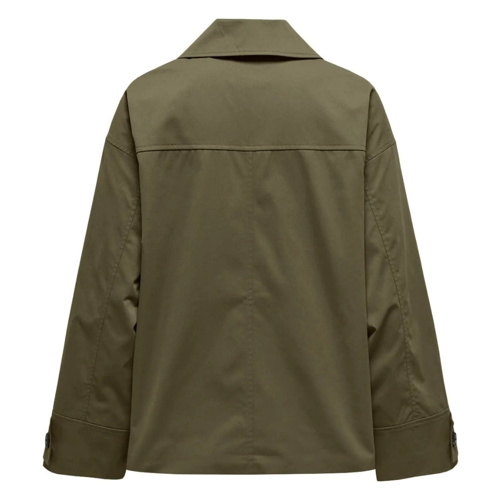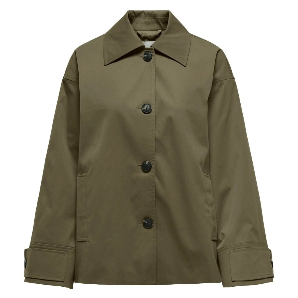 Sejeste trenchcoatjakke fra Only. Jakken har knaplukning foran, praktiske lommer og perfekt til det forår, vi går i møde. Brug den med en varm strik under, og style den både med jeans og nederdele alt efter anledningen.