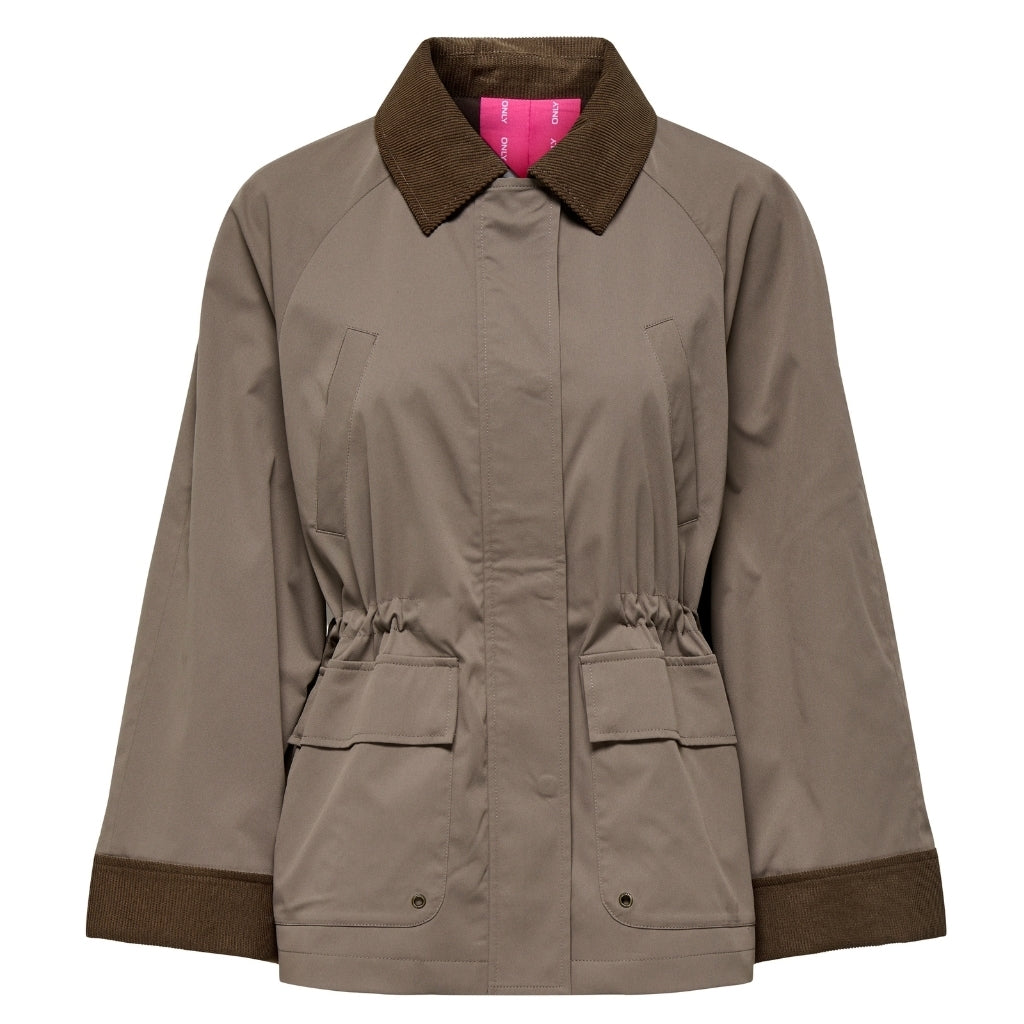 Cool jakke fra only med bindebåndsdetaljer. Jakken har krave og detaljer på ærmet i brunt fløjl.