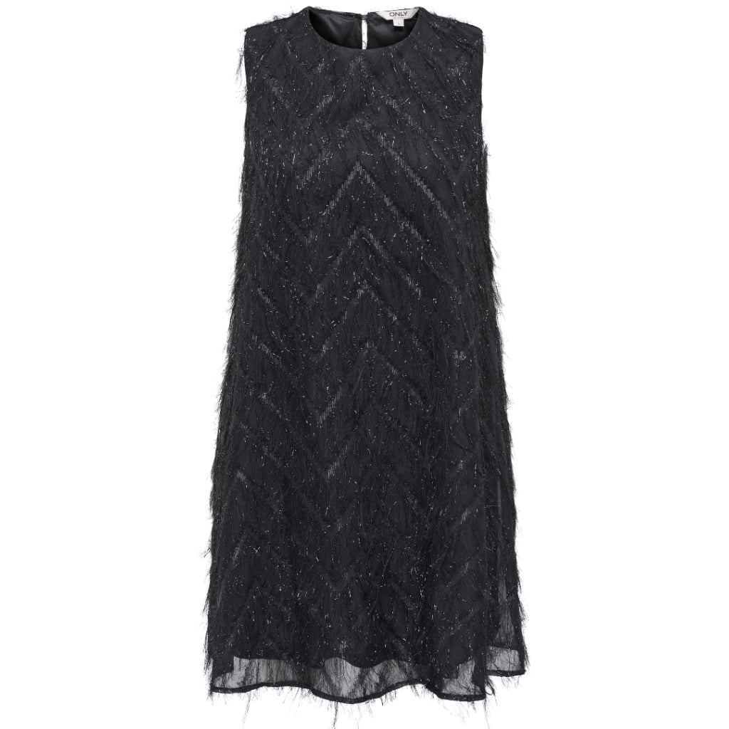 Smuk og festlig kjole, med høj hals og i den sejeste fluffy-glitterkvalitet.