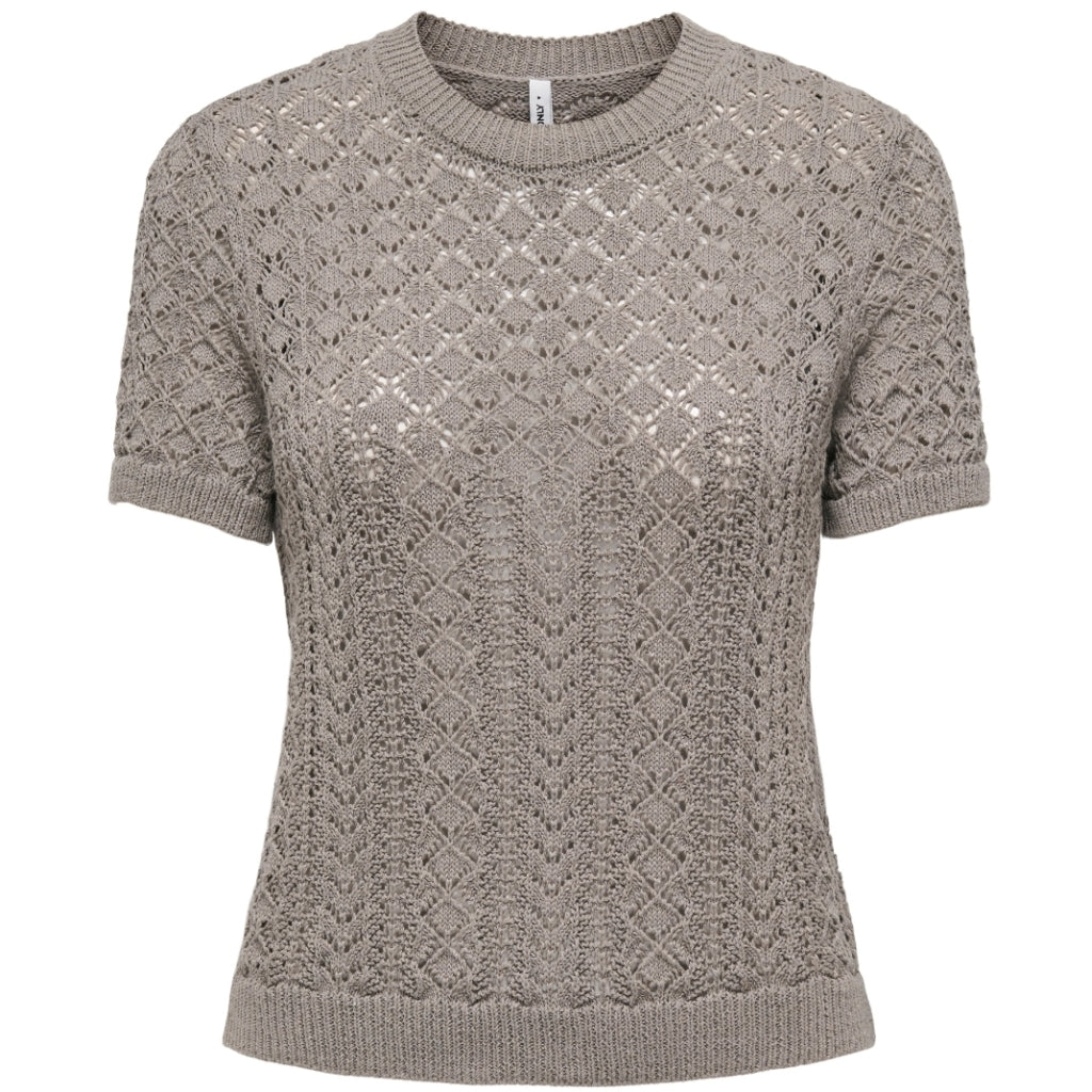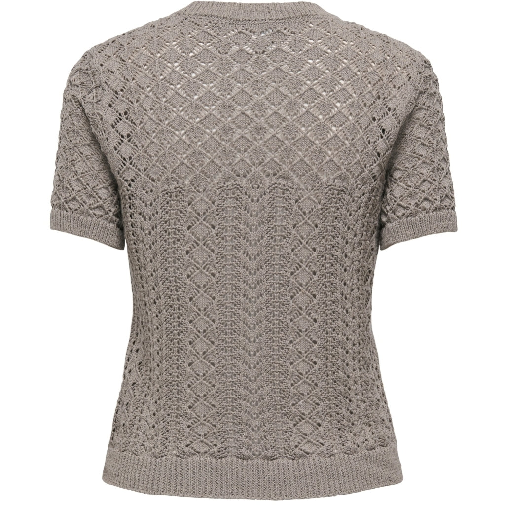Smuk strik t-shirt fra Only med hulmønster, der gør at den et let gennemsigtig. Style den derfor evt. med en basis top under. Den er super fin og feminin, og kan både bruges til jeans og nederdele.