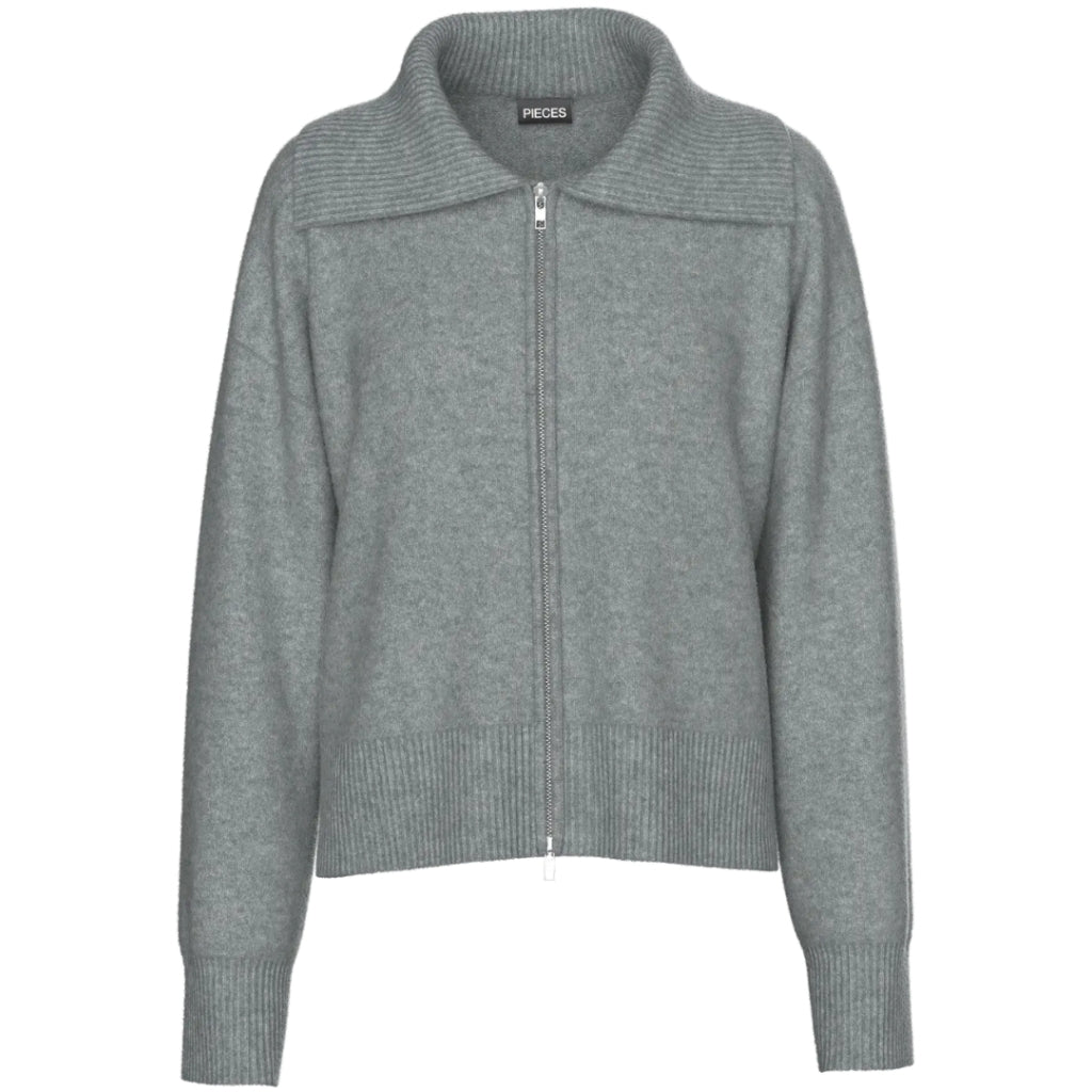 Behagelig striktrøje med lynlås og krave fra Pieces. Perfekt til efterårets hverdagsgarderobe.