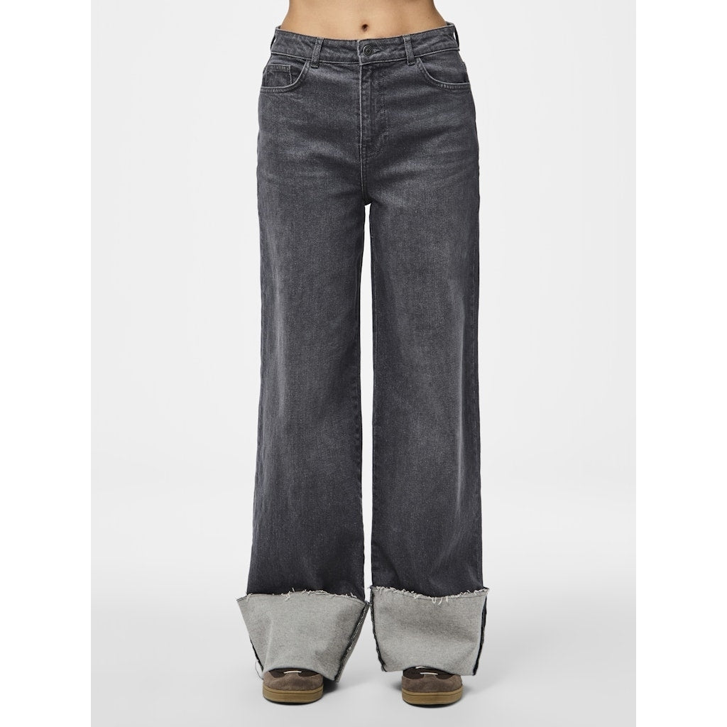 Seje jeans med opfold fra Pieces med lige ben. Jeansene har praktiske lommer i begge sider og bagpå, og kan styles med jakken fra samme serie.