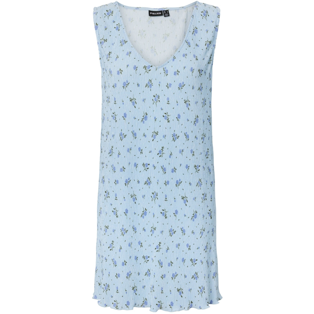 Kjole fra Pieces i en let og luftig kvalitet. Den har en løs, lige pasform, som falder blødt ned langs kroppen og giver et afslappet udtryk. Kjolen er ærmeløs og har en flatterende V-udskæring foran. Nederst afsluttes den med en let bølget kant, som giver et feminint touch.