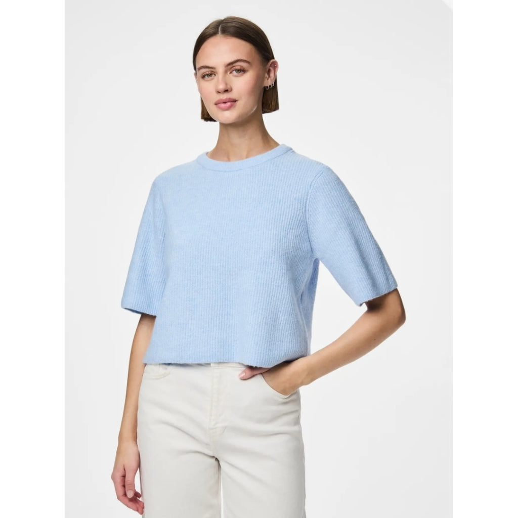 Sød kortærmet strik fra Pieces. Style den til et par jeans, og en mesh bluse under strikken.