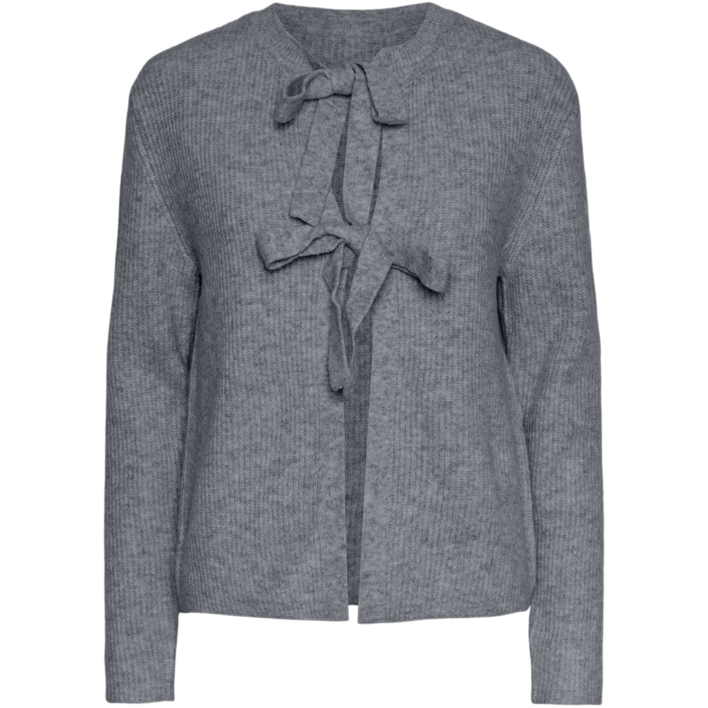 Smuk, blød striktrøje med bindebånd. Trøjen kan vendes om, så båndene sidder på ryggen. Super trendy og nem at style.