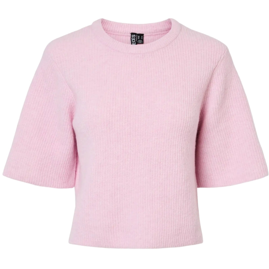 • Sød kortærmet strik fra Pieces. Style den til et par jeans, og en mesh bluse under strikken.