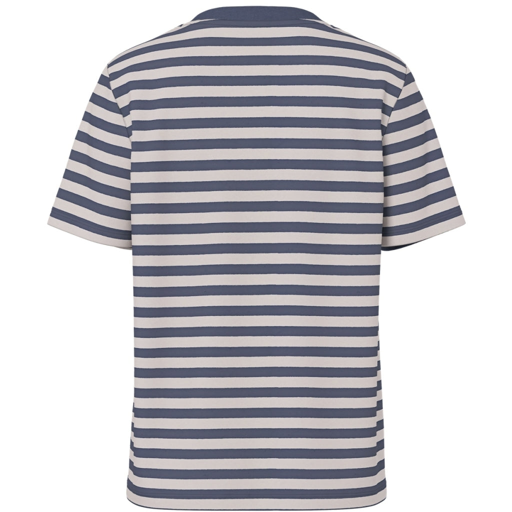 En t-shirt med korte ærmer og rund hals i regular fit, egnet til afslappet brug hele dagen. Mønsteret består af garnfarvede striber vævet ind i stoffet.