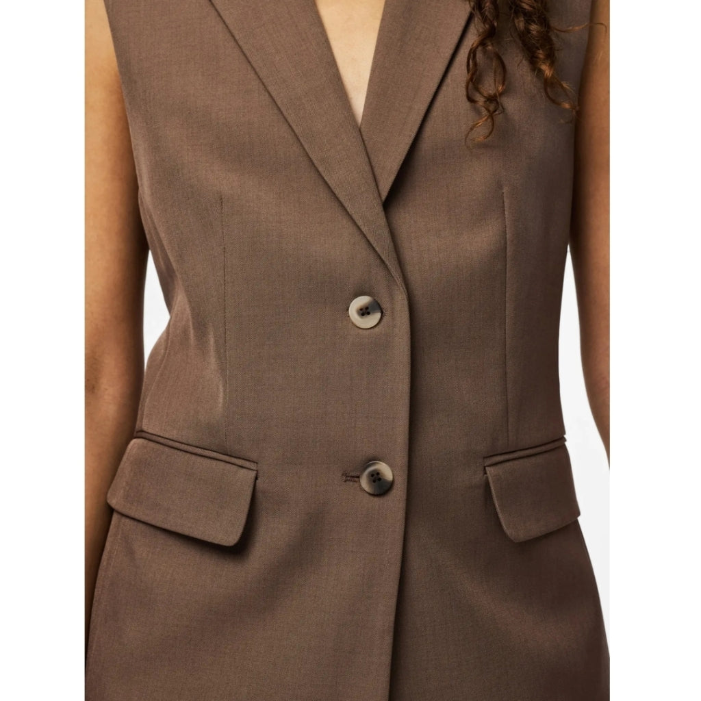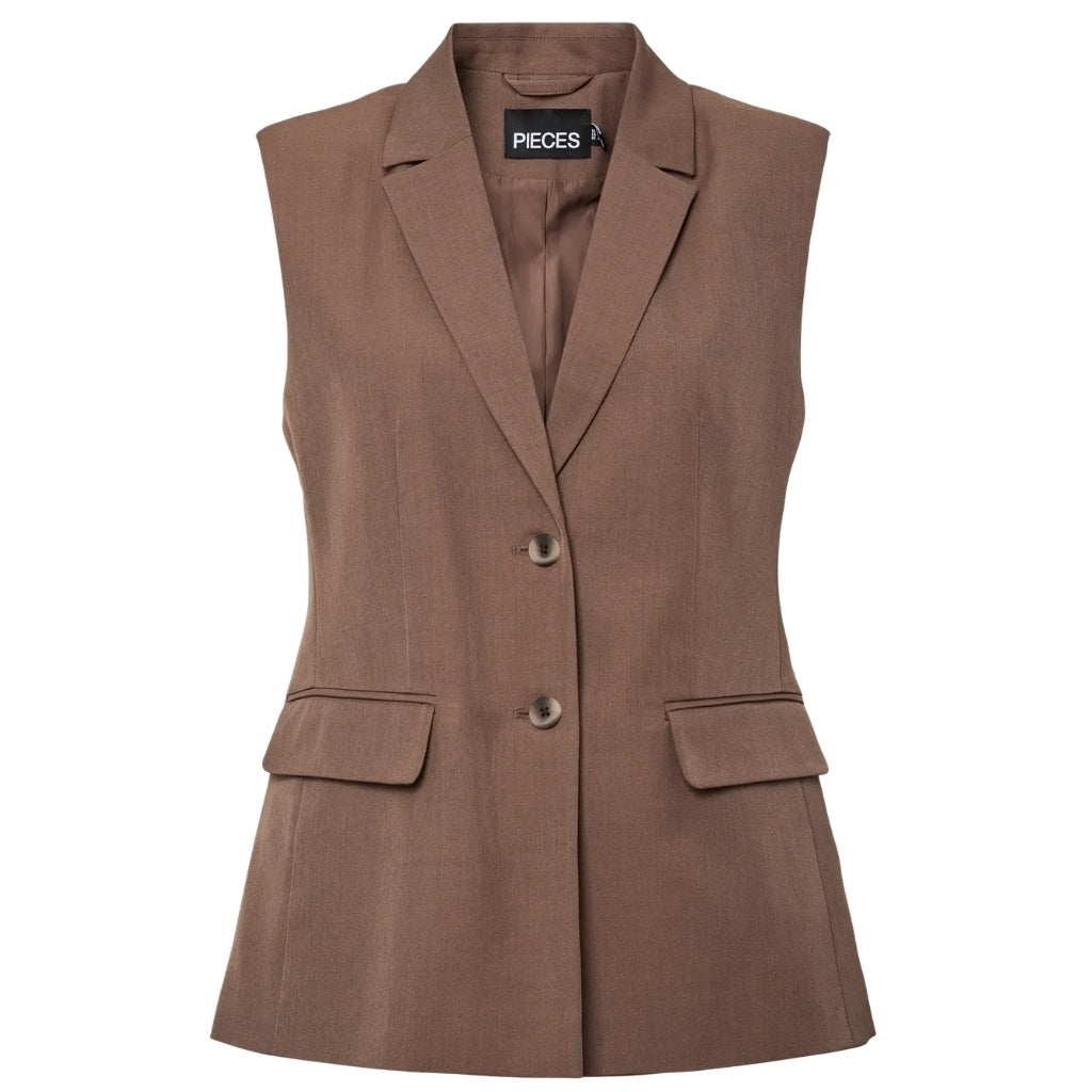 Ærmeløs blazer vest fra Pieces. Vesten har en slim fit-pasform med reverskrave og to knapper foran.