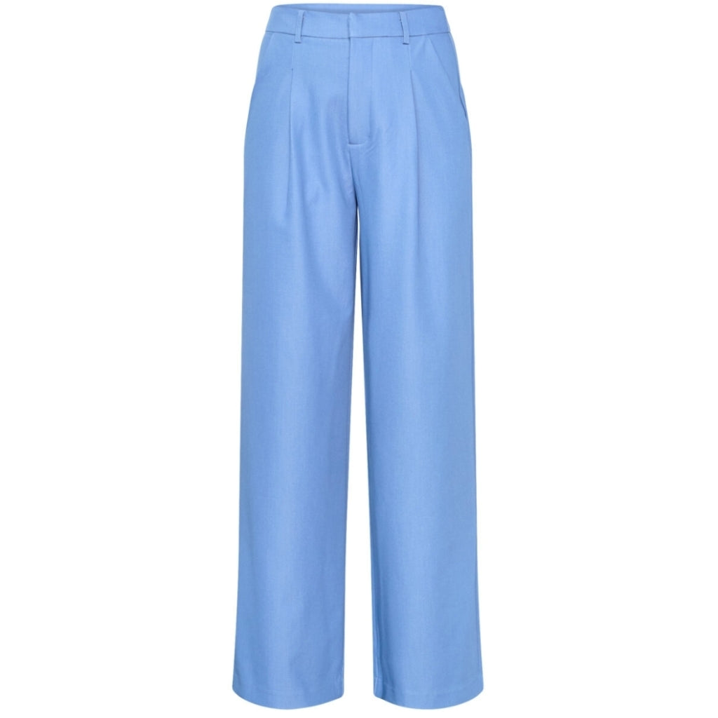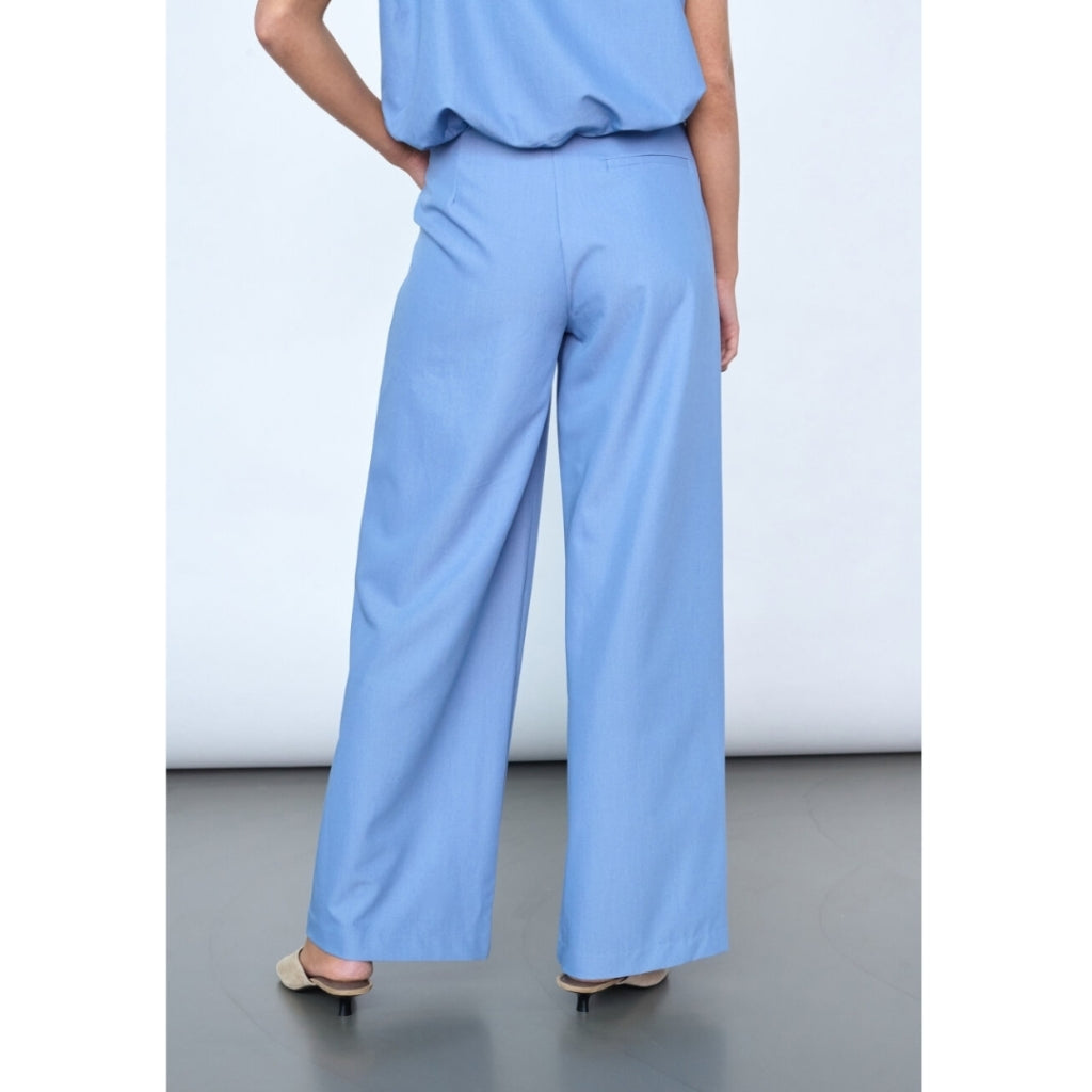 GREAT-PA5 er et par bukser med wide-leg silhuet og høj talje i et denim materiale. Designet har klassiske læg foran, diskrete skrålommer og en skjult lukning.