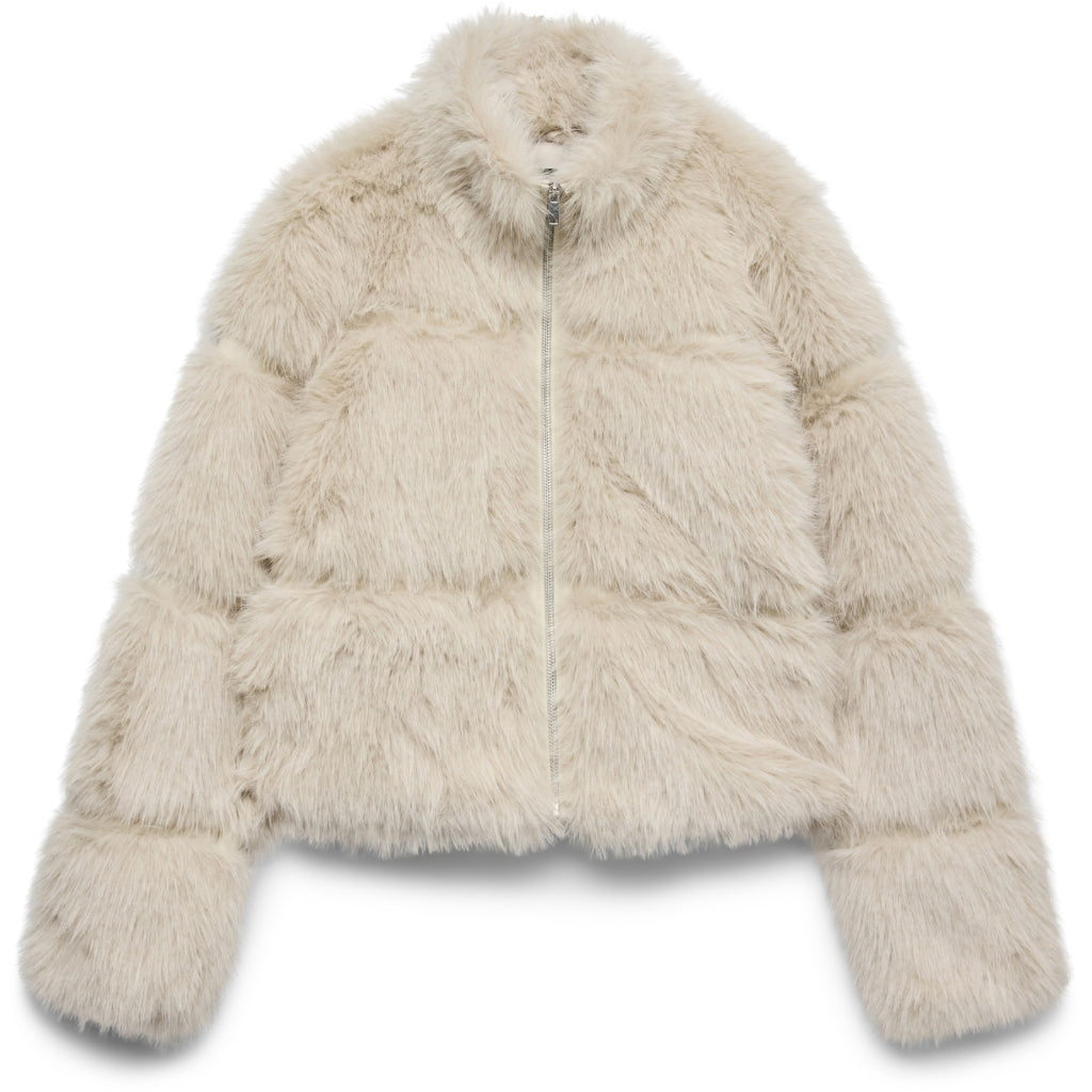 Sej imiteret pels jakke fra Vero Moda. Jakken har en høj krave, lynlås-lukning og lommer i siden. Denne jakke kan du løfte dit look på ingen tid. Det elegante design skaber et tidløst look, der passer til alt.