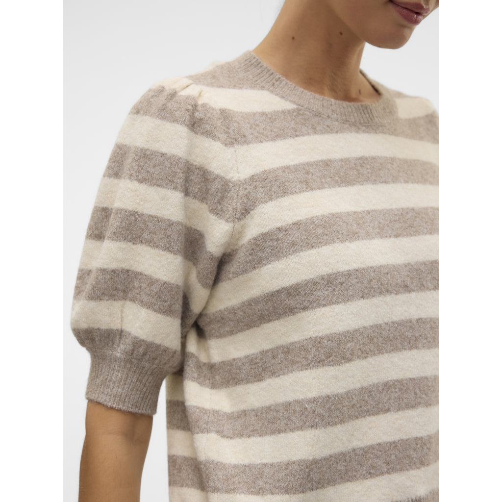 • En striktrøje med rund hals og 2/4 ærmer i puffstil, der giver en afslappet og behagelig pasform. Perfekt til afslappede outfits året rundt.