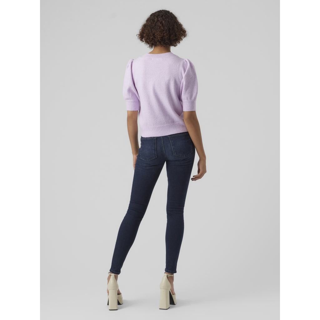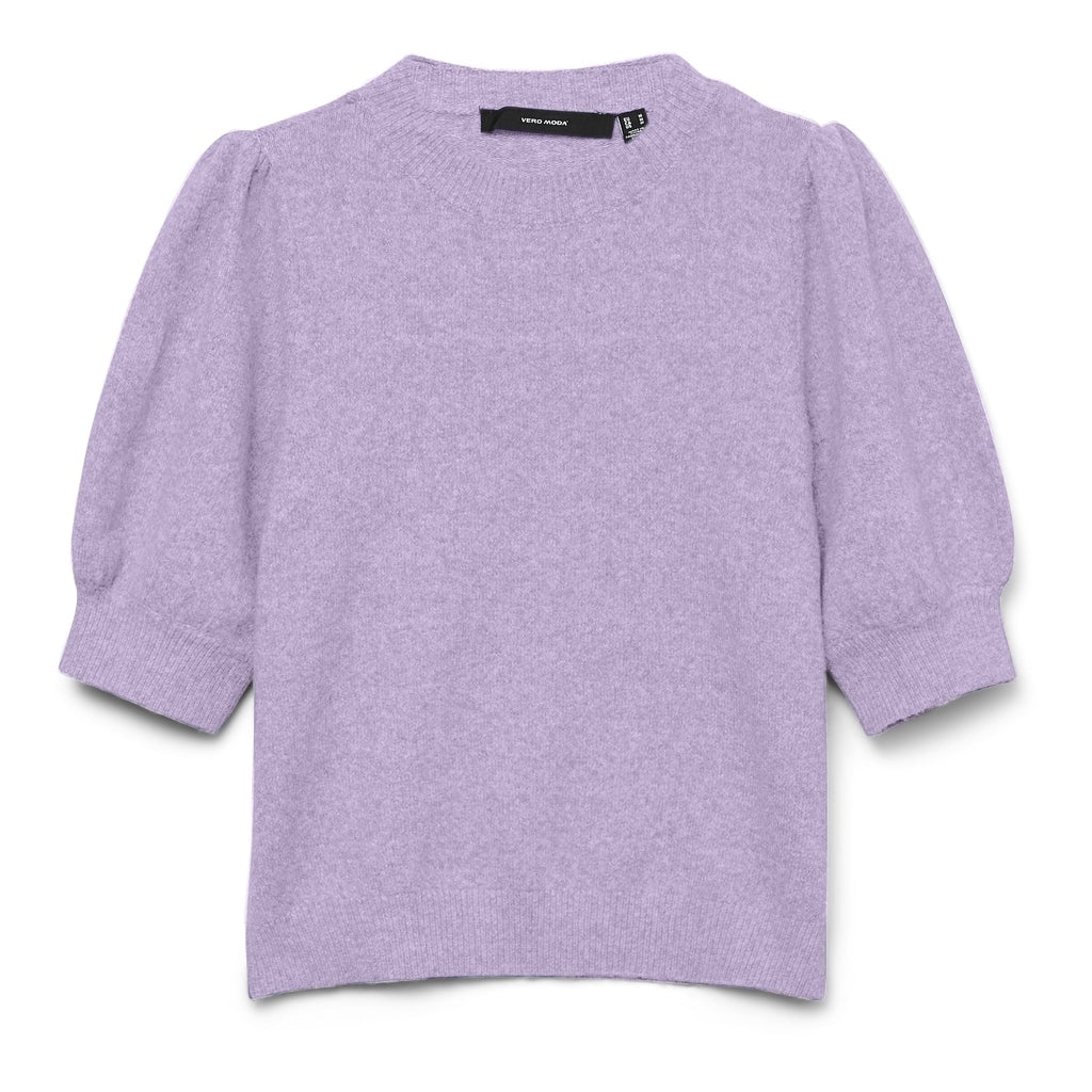 En striktrøje med rund hals og 2/4 ærmer i puffstil, der giver en afslappet og behagelig pasform. Perfekt til afslappede outfits året rundt.