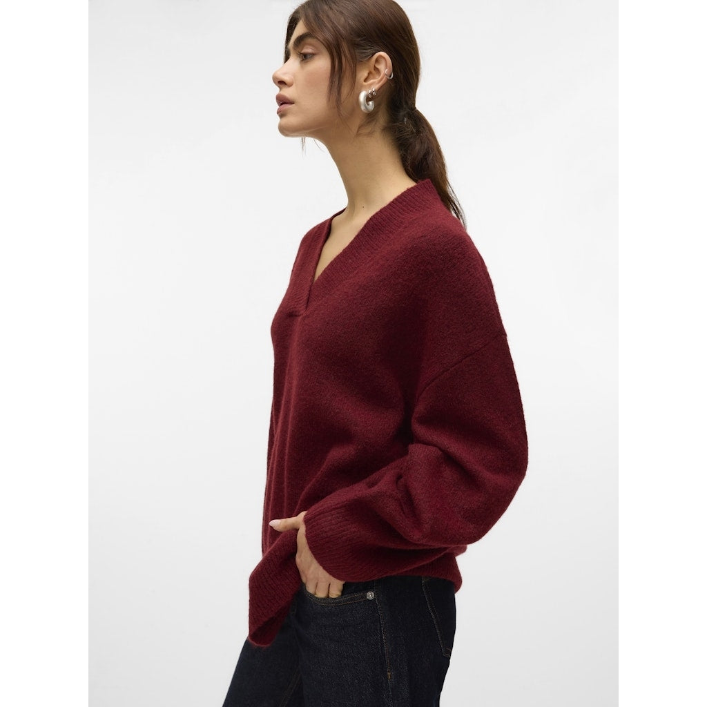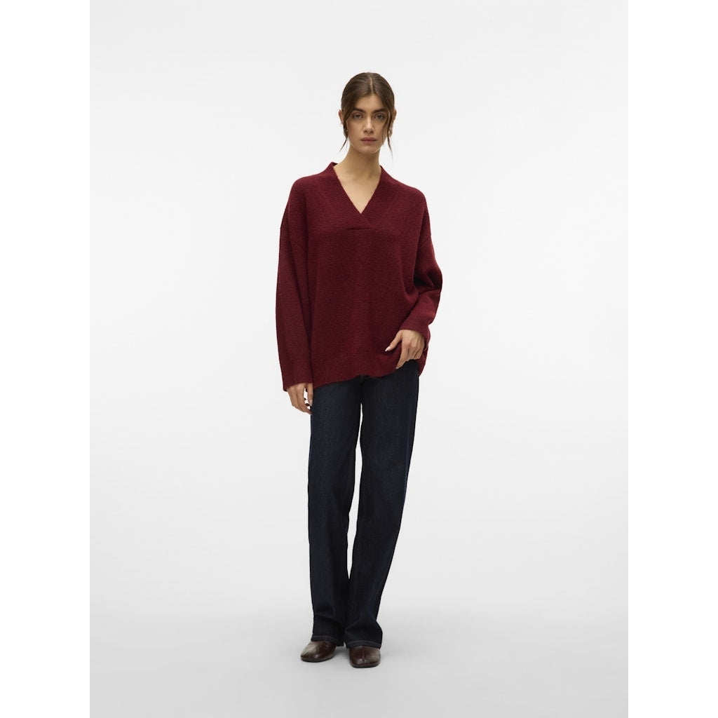 Lang oversize strik med v-hals. Perfekt til jeans eller med en nederdel under.