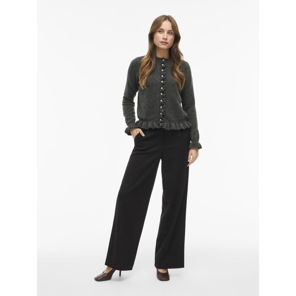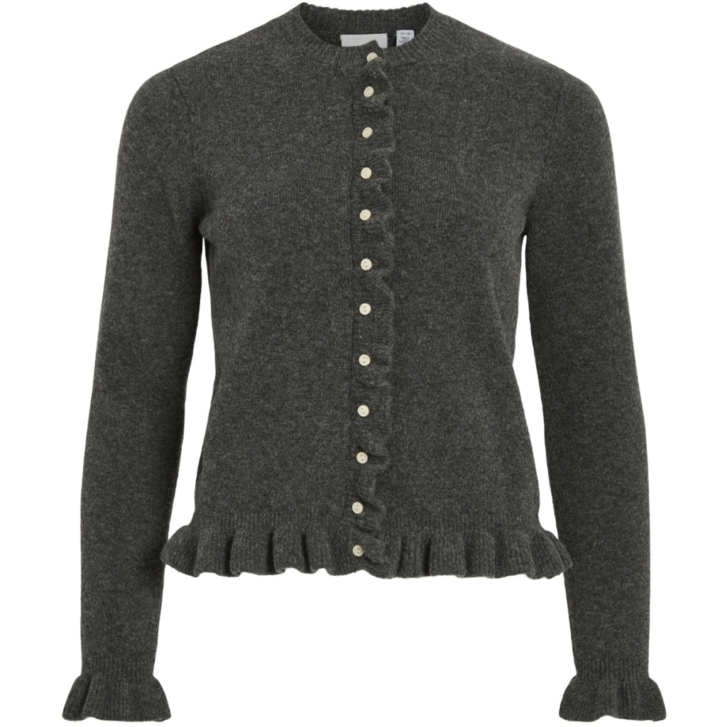 Blød cardigan med rund hals og knapper, designet med flæsedetaljer. Perfekt til lag-på-lag look i alle sæsoner.