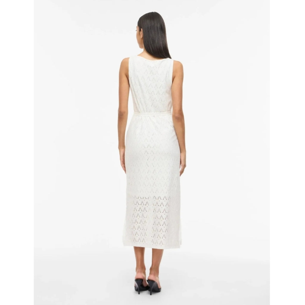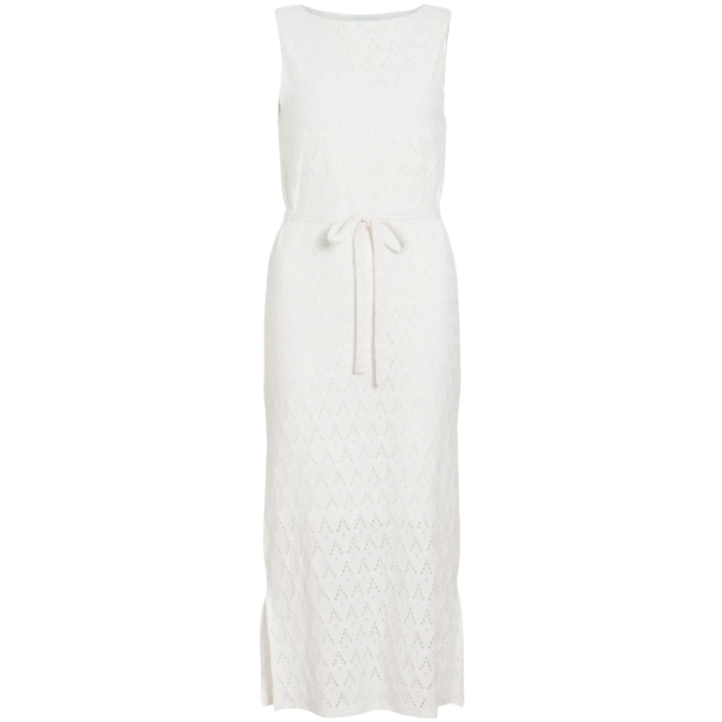 Flot midi kjole med hulmønster og aftagelig bindebånd.
