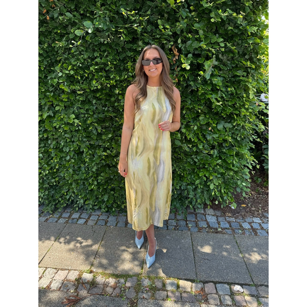 Den smukkeste gule kjole fra Vila. Høj, rund hals og falder flot. Style den til sommerens fest med et par stiletter eller ballerinaer.