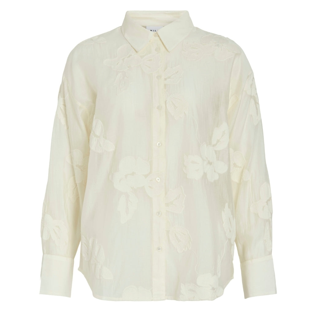Smukkeste skjorte fra Vila med blonder. Style den med et par jeans for et mere afslappet look.