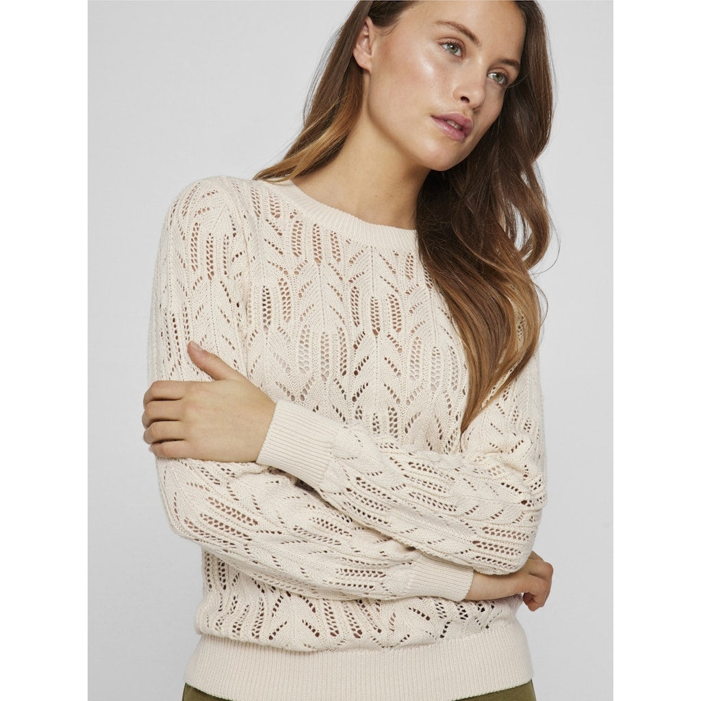 Striktrøje med smukt hulmønster fra Vila. Super feminin og kan bruges for sig selv eller med en blazer over. Style den med jeans og sneakers til et fint hverdagslook.