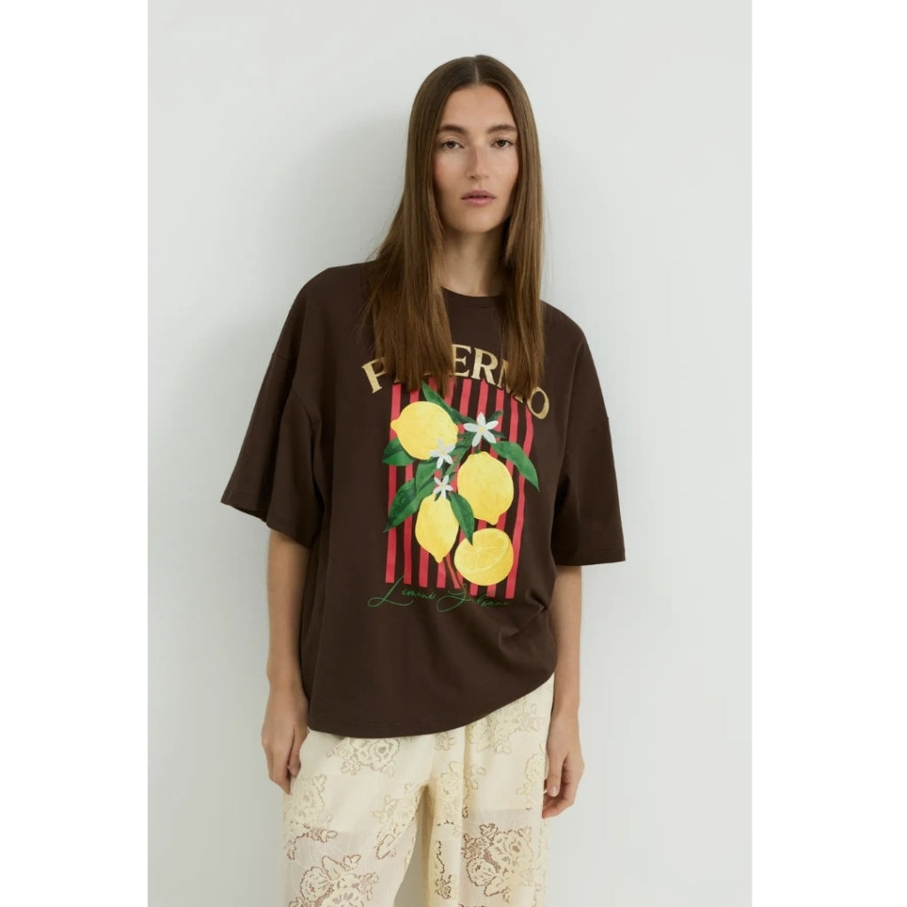 Sej over-size t-shirt med citroner. Perfekt at style med både jeans, shorts eller nederdele, og kan styles til enhver lejlighed. Et musthave i klædeskabet året rundt.